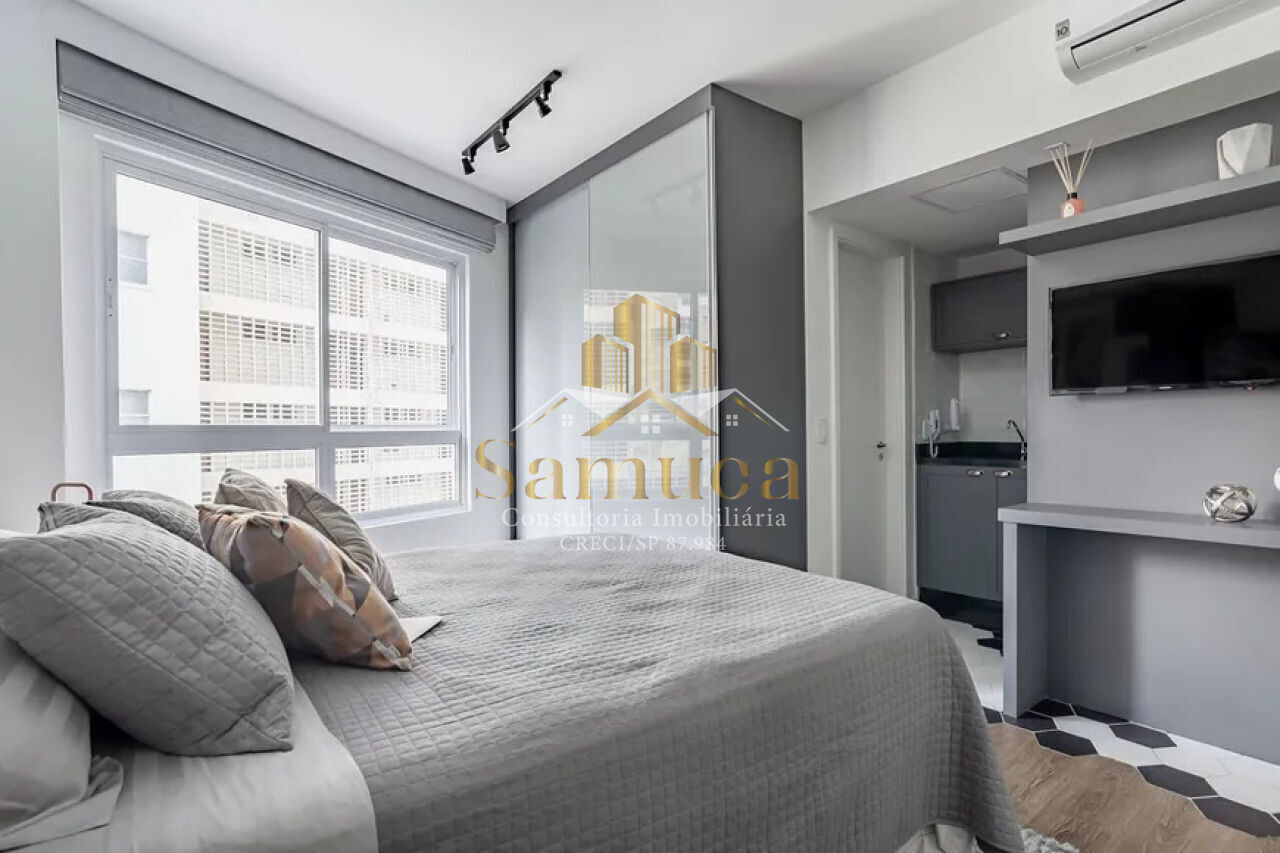 STÚDIO TOTALMENTE MOBILIADO, será entregue conforme as fotos, com todos eletro / eletrônicos, cama queen nível hotelaria com box, além de louças, talheres, roupas de cama e banho.