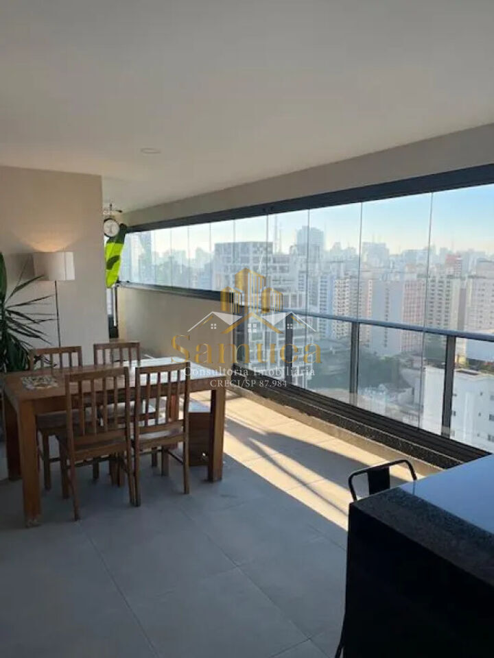 Amplo apartamento mobiliado com vista privilegiada e eterna em andar alto, 3 dormitório sendo 1 suíte, 118mts/aú, 2 vagas de garagem com depósito no subsolo, sala ampla para 2 ambientes, varanda envidraçada, cozinha, lavabo e área de serviço.